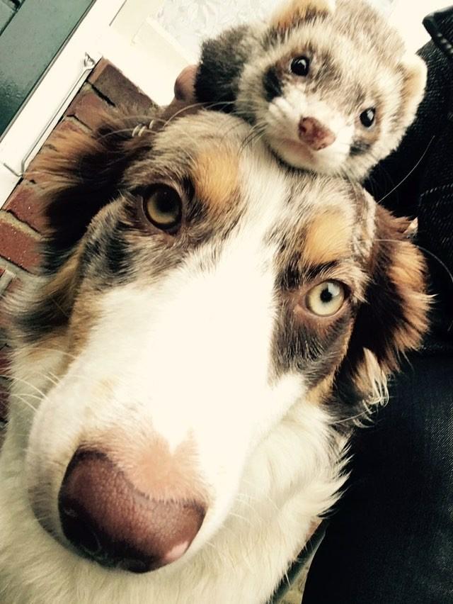 Wij zijn Jason en Freddy: wij zijn twee lieve en tamme fretjes die samenwonen met Kite, een hond die ook in ons bestand staat.